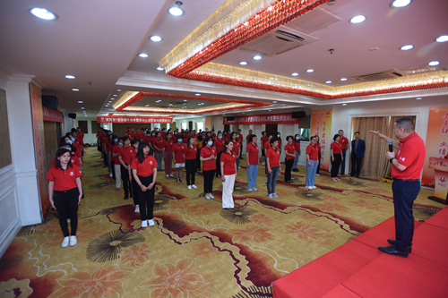 牛商爭霸賽每個企業團隊都會上臺做風采展示,士氣展示,大聲喊出自己的口號、目標,同時在所有人的見證下宣誓承諾,象征著牛商爭霸賽的正式開始。