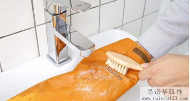 2、先用軟毛刷,在沖鋒衣弄的較臟的部位首先進(jìn)行刷洗,一定注意不要太過于力過猛;