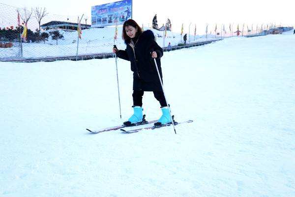 2.對(duì)雪和滑雪板適應(yīng)之后,可以開(kāi)始在緩坡上,一步一步地側(cè)向上坡行走。然后,兩只雪板同時(shí)側(cè)向向山下橫著滑動(dòng),即橫向滑行。此時(shí),可以試試立起雪板鋼邊進(jìn)行行制動(dòng)的感覺(jué)。
