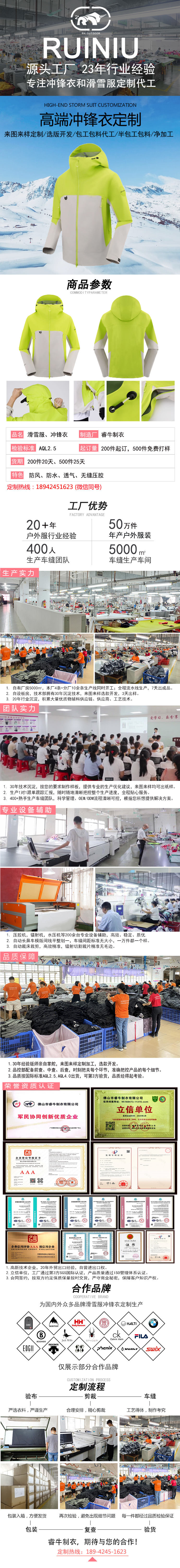 持續23年專注沖鋒衣、滑雪服定制加工廠家