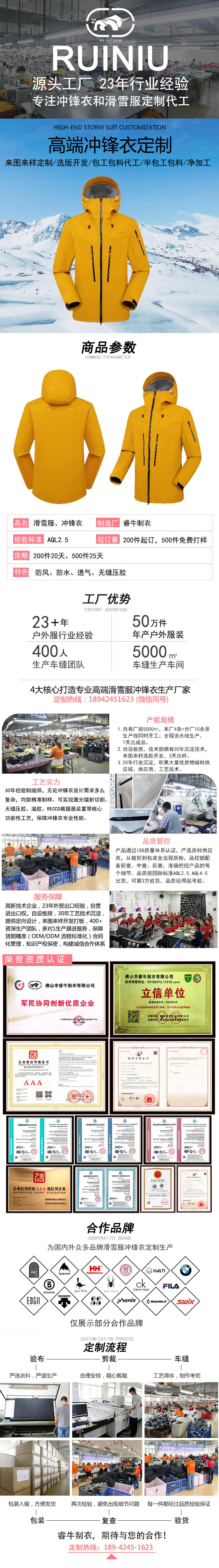 持續23年專注沖鋒衣、滑雪服定制加工廠家