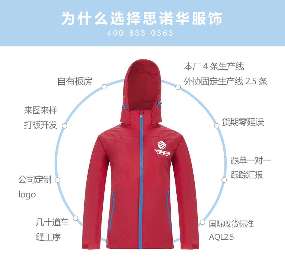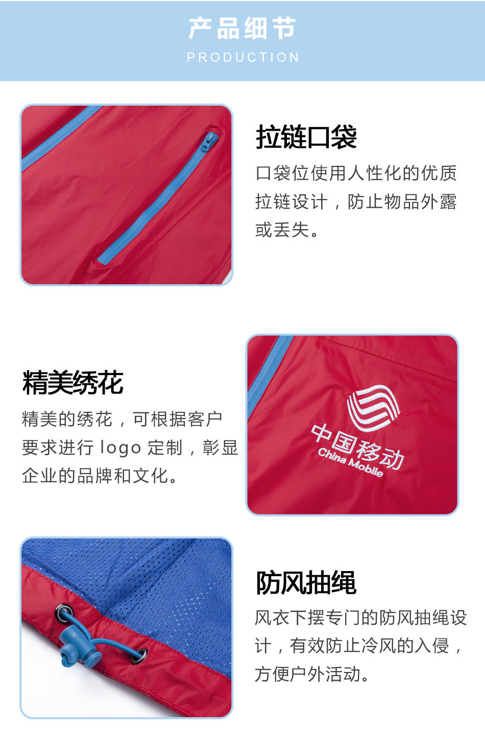 精美繡花:精美的繡花,可根據(jù)客戶要求單層風衣定制的logo設(shè)計,彰顯企業(yè)的品牌和文化。