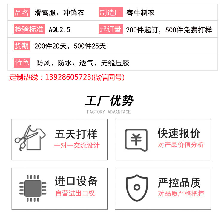 持續23年專注沖鋒衣、滑雪服定制加工廠家