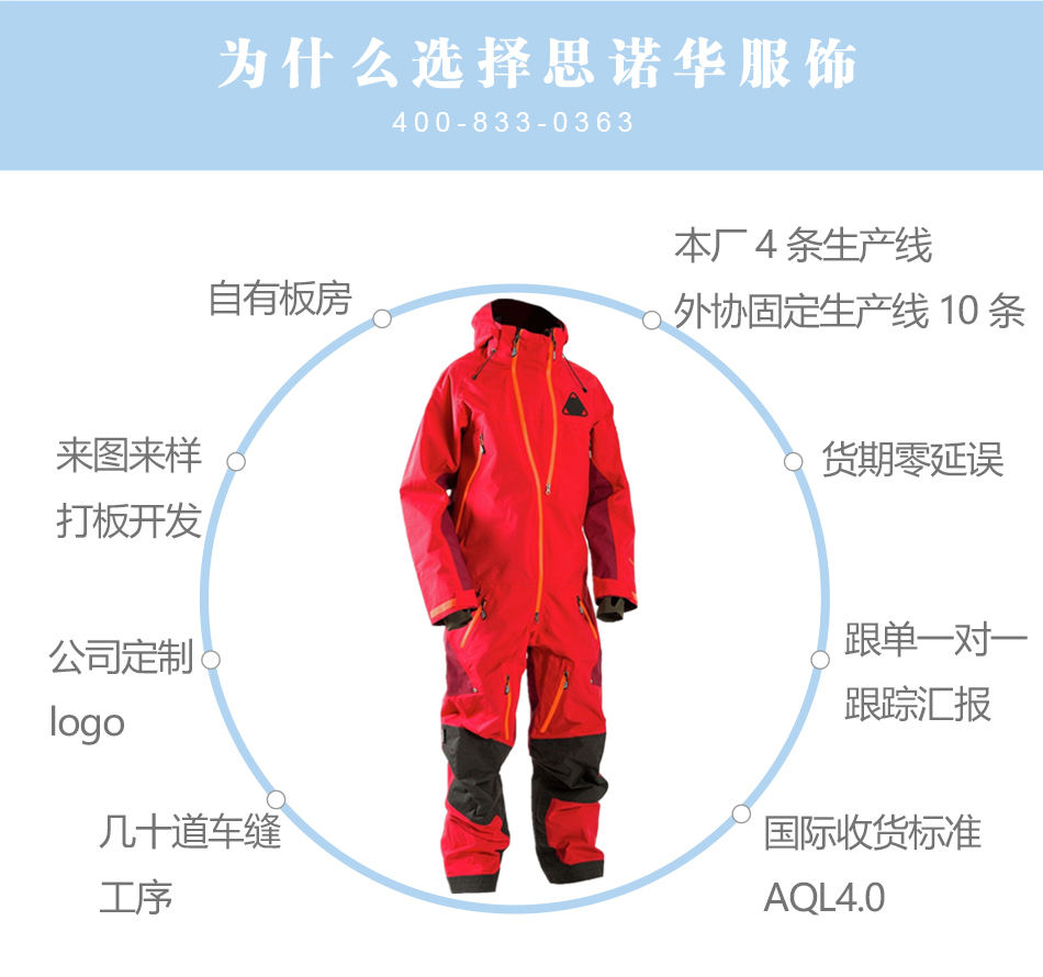 戶外連體滑雪服定制 擁有30年制版經驗師傅,出樣高速